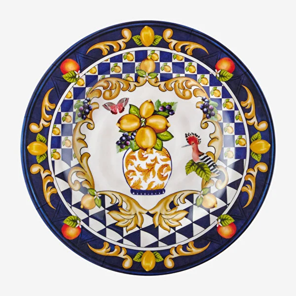 Chiara Alessi Capri vazo desenli mavi melamin kahvaltı tabağı uzun süreli kullanım için tasarlanmış, kırılmaya ve çizilmeye karşı ekstra dayanıklıdır ve BPA içermez.